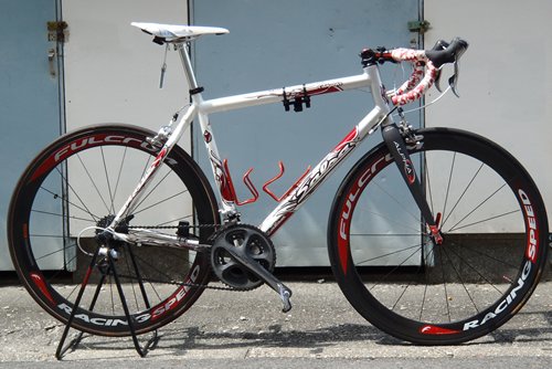 さて、組んでしまっての印象。フォークがTrueTemperっつーかAlphaQ、ホイールもフルクラムなので、多分世の中のバイクの中で硬い方でしょう。しかし軽量に仕上がったので、非常にオールマイティー。ロングライドは1日240km走っても(←バカ)平気。富士山ヒルクライムは違和感なく走り、1:23でした。