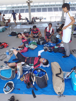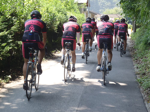 チームジャージオレが東京から名古屋に転勤し、1年が経過しようとしていた。一人で王滝やら富士スピードウェイやら出ていたが、今勤めている事業所には5000人近くの人々がいる。ということはまだまだ遊び相手がいるはず。10年4月、とある花見で社内の色んな人と酒を飲んでいたら自転車でのツーリングが話題に。そこでメンバーを募ってチームジャージを作ろう、と言い出しっぺになったオレ。何かを始めるときはイナーシャが掛かるのは当然だし、リーダーは自己犠牲を払って当然である。核となる3人で関係者をあぶり出し、最終的に20着強にわたるチームジャージメンバーをかき集めた。チーム名も色々考えたんだが、事務局長として提案した「BakaTorque」という怒濤の名前で押し切ったのだった。なお、他に案がなかったら「大曽根ファイヤー」にしちゃおうとしていたのは、オレだけのひみつ。 6月に、実績のあるWaveOne社に正式発注、8月初頭には納品された。予定よりも圧倒的に速いペースである。ジャージのデザインは2回目だが、WaveOneから色々提案をもらって無事決着。 右のImage。おお、お揃いだとプロチームみたいだ。トレーニングに、みんなで揃ってきてくるところがよい。そんで、その間、名古屋〜富山240kmを走破したり、矢作川(岐阜県)の鮎やなを攻めたり責めたり。完全にアホな集団と化した。しかし、こっそりと富士ヒルクライムに行ったりと活動は継続していたのだった。チームジャージを作る大きなきっかけとして、みんなでシマノ鈴鹿に遊びにいこう、というのがあったのは間違いない。 エントリーシマノ鈴鹿は、沢山の競技の集まりになっているので吟味しながら出ることが必要だ。みんなでわいわいやるなら、2時間耐久が軸になる。これに、その他一発物の競技を組み合わせていくのがポイントだが総勢7名でのエントリーとなると調整も大変。 最終的にオープン1の両日に1名、オレが初日1時間マラソン、2時間マラソンは全員、翌日のインターミディエイトにもオープンの1名を除いて全員。 スポーツエントリーからのエントリーだが、やや癖があるので注意。一人の人が複数申し込みは出来るようになっているので、よく把握しながらやったほうが無駄がなくてよい。またエントリーする人の個人情報も事前に集めておいた方がスムーズだ。さらに、それなりのエントリーフィーだから立替えが出来ないと金欠に陥る。 鈴鹿サーキットは全体として広大なので、駐車場も複数ある。台数限定で近場の駐車場予約が出来るので、複数台のクルマで行くときは荷物が多い車については事前予約をしておいた方がいい。しかし、全体で何人参集しているんだろうね。 移動当日は受付なんぞが確か5:30開始だったと思われる。5時inを目指して、3時に集合。KDのミッドシップ4WDターボ車は、オレが試走したいってのもあるが場所取りも兼ねているので一番バッターとして他車に先行。3名、3台ロードバイク。名古屋から高速ですんなり到着する。駐車場にもすっと入ることが出来た。今回は我がメンバーは全車、交通教育センターに駐車。入る時間帯はばらばらなので混まないが、初日の2時間耐久のあとに出るときはそれなりに集中するため、駐車場を出るのに数十分かかってしまった。これはやむを得ないところだ。 早速場所取りに先行して若い衆2名が走る。ところが、既にピットは多くの人で一杯になっているとのこと。ちょっと、人数に対してシートを広げ過ぎの方々もなきにしもあらずだが、いったんピットの裏側に陣取る。 途中、日射しが移動してきて暑くなってきた為じりじりと移動したが、最終的に昼前後にピットビル3Fに移動。こちらは空いているし、なにより風があまりに心地よい。気分もよろしい。1Fはコースは近いし買い物も出来る等利便性は高いが混んでいてごみごみしているし、人の往来は絶えないし、良い気分を味わうというものでもないので、この3Fはオススメだ。昼寝するにも最高。 コースImageはなし。具体的には公式頁を見てもらうとして、印象だけ書くと: ・内燃機関車両とは逆回り。これは、順回転で走ると直線後の第1コーナーで死者が多数出る為と思われる。他のイベントでもそうだね。 ということで、集団走行では特に終盤近くの細かい左右のコーナーなんぞは危険もの伴い苦労するので要注意だ。オレは自転車でサーキットは富士スピードウェイ(FSW)しか走ったことがないんだが、はっきり言ってFSWは楽しい。程よい、楽しい高速コーナーがあり、がーっと黙っていても60km/h出る直線を駆け抜け、しかし最後は峠をえっちらおっちら登る。そして直線に戻り呼吸を整える。 これと比較すると、ちょっぴりつらいのが鈴鹿だ。裏の直線くらいかなあ、がーっと楽しいのは。ただ、登りがないのですーっと集団について走ることが出来るのも鈴鹿。 コースじゃないんだが、現場はいい感じだ。お店が沢山ある。ピット裏ではウィーラースクールをやっている。おっ、