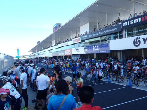 この人出の多さは、2時間耐久の時。左がストレート。建物上方が3Fです。2Fはレンタルとオフィシャルで使用、かな。