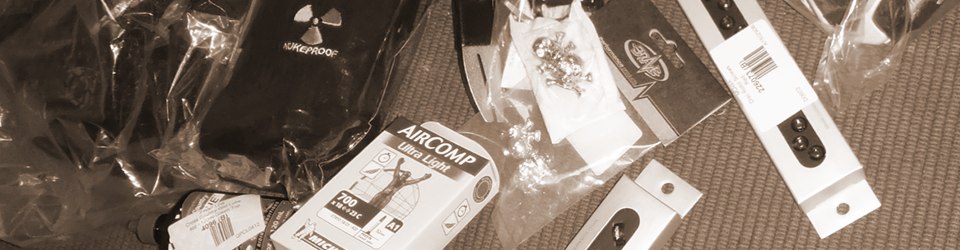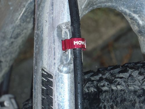 Mowa Cable Guidehttp://www.mowabike.com/ MTBのブレーキホースを留めるガイド。普段は真っ黒なものを使っているが、ふと発見、思わず購入。いつもの黒いものはどうやらJagwireのものと思われる(アフターパーツで同社のものを買って使っている)ので、それ以外のものを見るのも珍しい。 重量などは気になるレベルではないが、Jagwireのものが樹脂製で柔軟であるのに対してこちらはアルミなので、ほとんど変形しないため、装着がちょっと難儀かも。付けてしまえばそれまでなので、見た目はグーということで、それ以上もそれ以下もない。 上記サイトを見るとわかる通り、ギヤやら色んなものを出している。センスいいね。中身は謎。だれか試して。 |