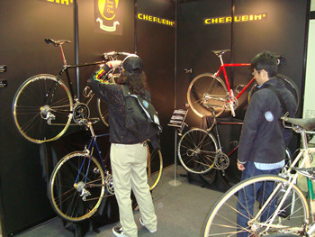 小さなブースでかっこ良い展示、しかも人も沢山詰めかけていたのがこのケルビム。光るものが。 |