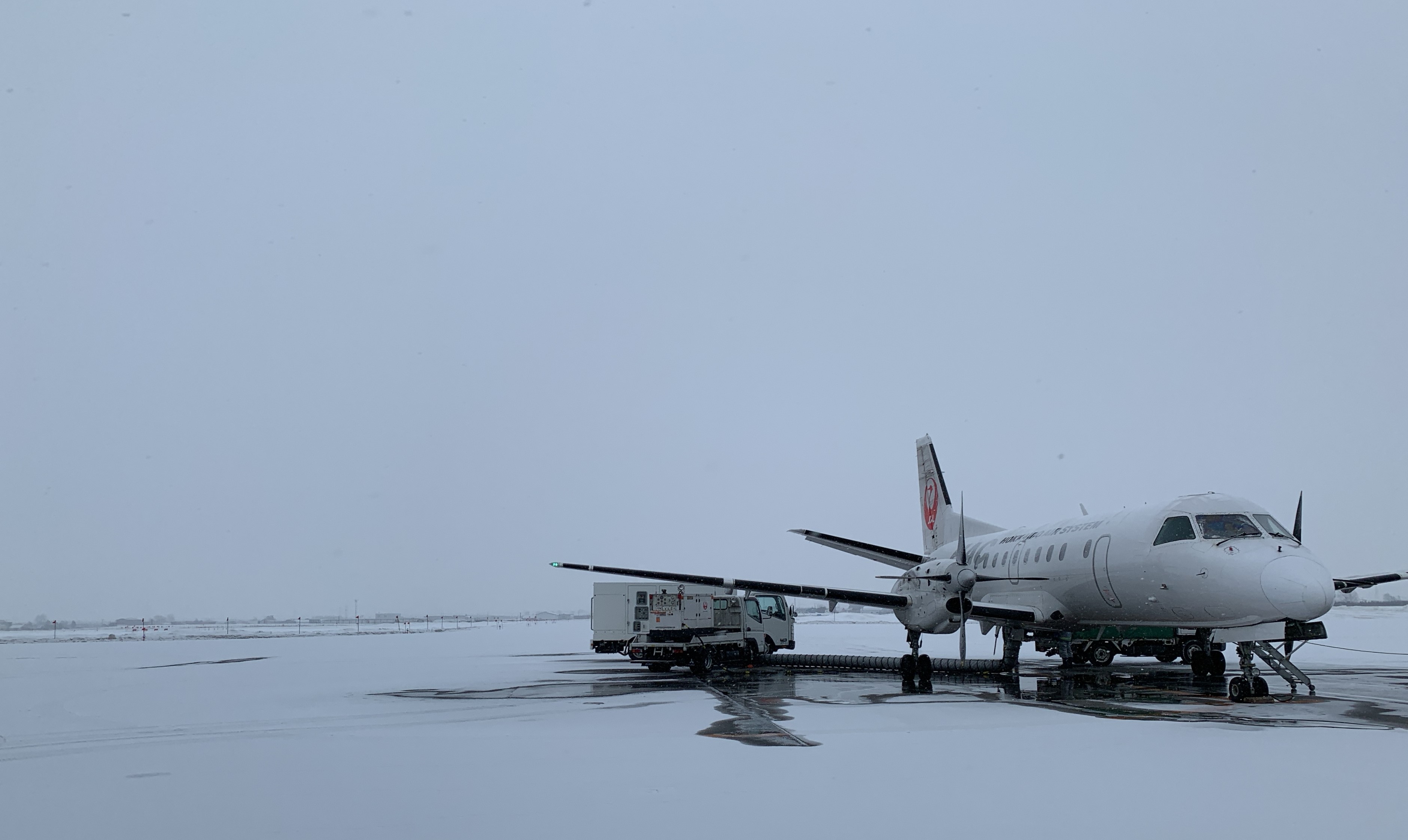 Imageは、雪の丘珠空港と、かわいらしいSAABの機体。