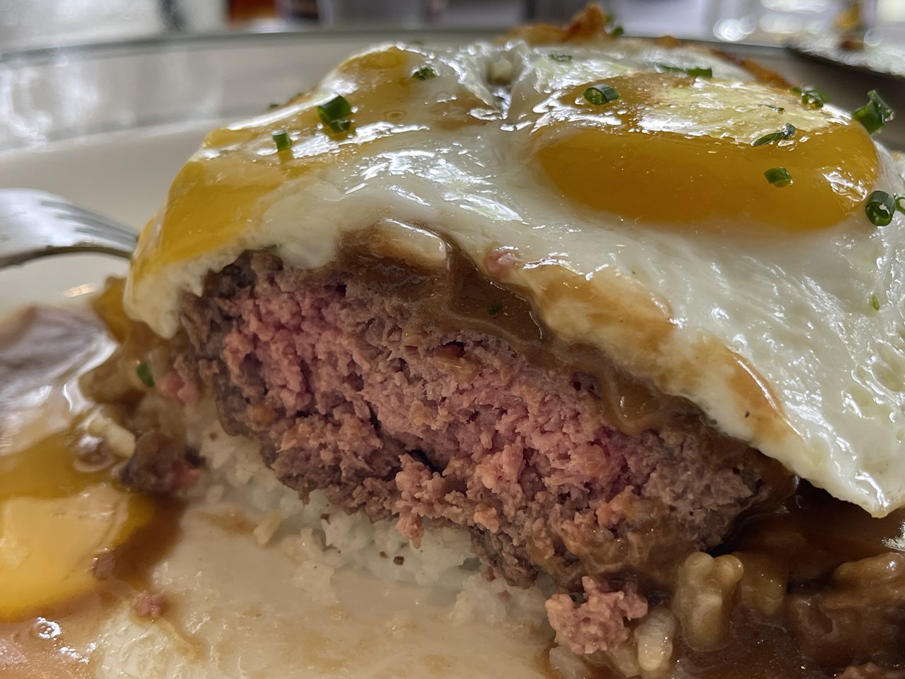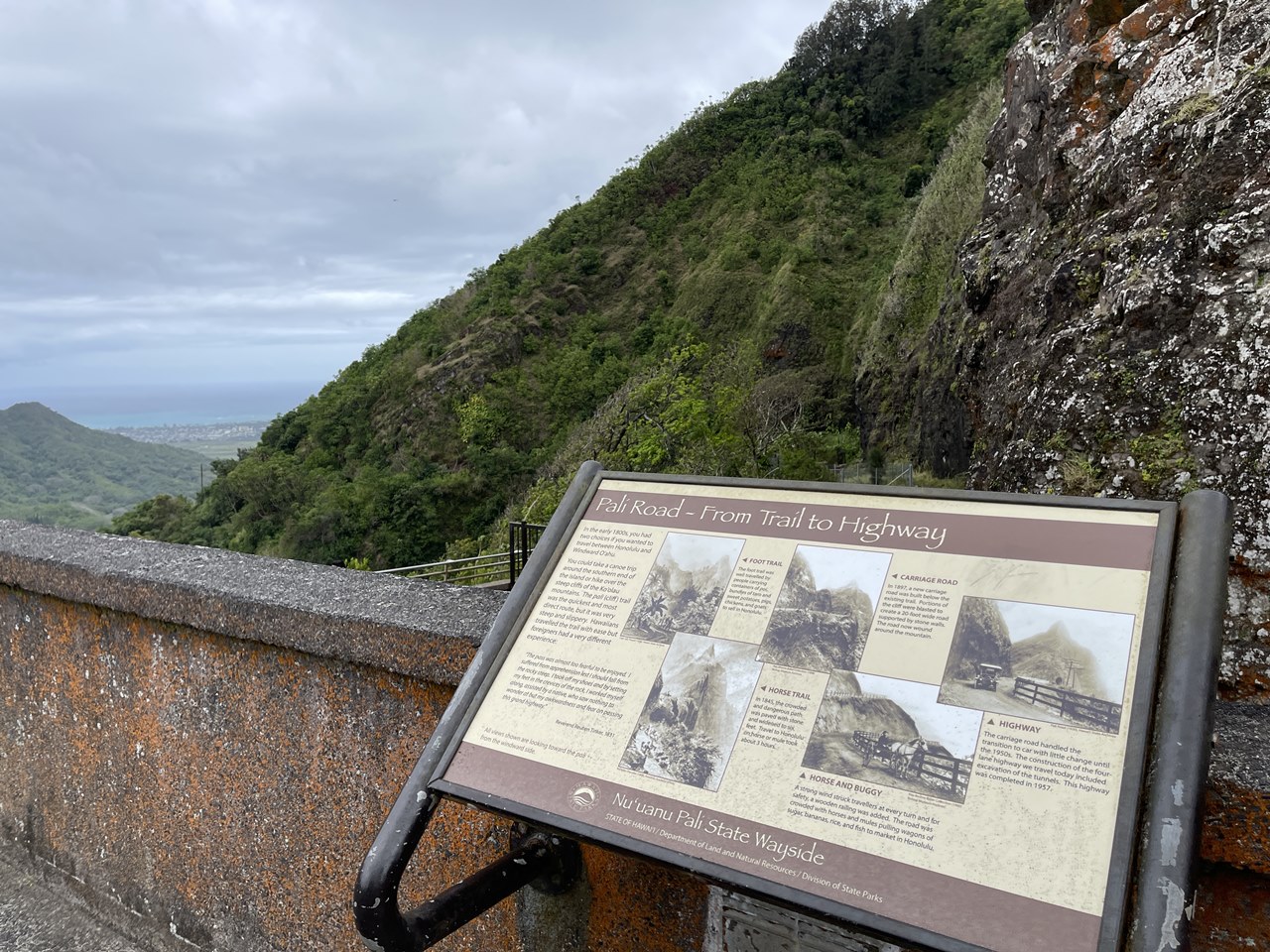 今回はツアーバスが付いている。2階?の団体がバスに乗るエリアでバスを待ち、乗る。簡単な観光付きだ。定番のモアナルア・ガーデンは3回目。ヌウアヌパリ展望台は新婚旅行から2回目かな。風が強い。カメハメハ大王のところ。昼食はWolfgangステーキハウスでロコモコ。その後はホテルへ。