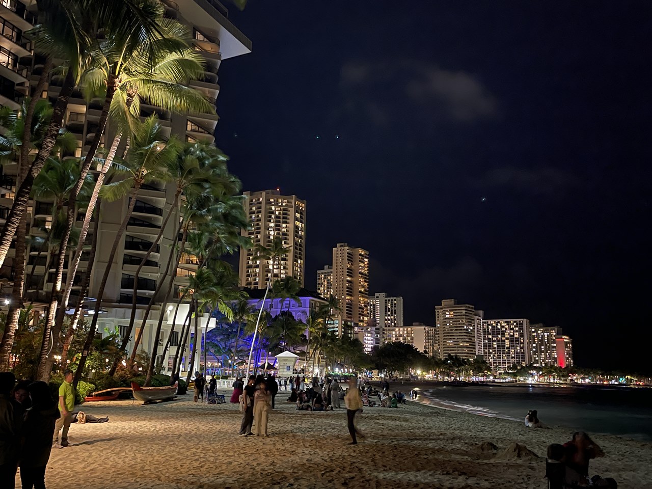 この日は、ツアーの一環でハイアットリージェンシーのレストラン、The Buffetで食事。その後はちょっと散策。ワイキキフェスティバルの最終日らしく、町は盛り上がっていたね。この日は食事しながら、長岡の花火も見ることが出来た(大盛り上がり!)。