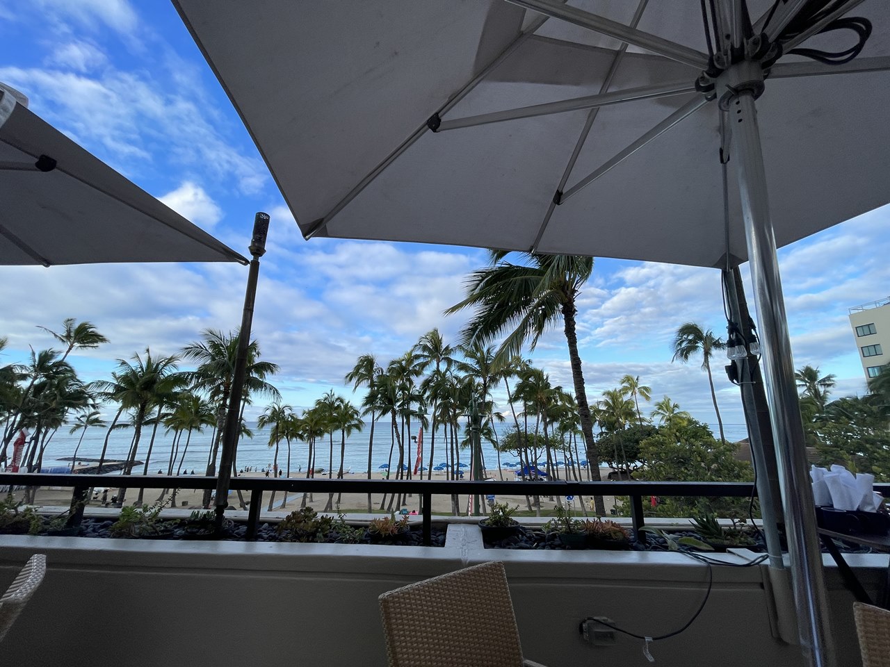 さて朝食。この日はシェラトン プリンセス カイウラニへ。ここ、新婚旅行の時に泊っていて、前回もちらっと覗きに来たんだけど、古いホテルながら雰囲気が好きで、またプール周りのレストランの感じも好きで。ただし注意点。ここはブッフェじゃないんだよね。いくつかのメニューから選ぶ形。で、これの量がまあまあ多い(特にアメリカンブレークファスト)。出来れば下調べして、どういう朝食になっているか確認してから行くとよいですなあ。