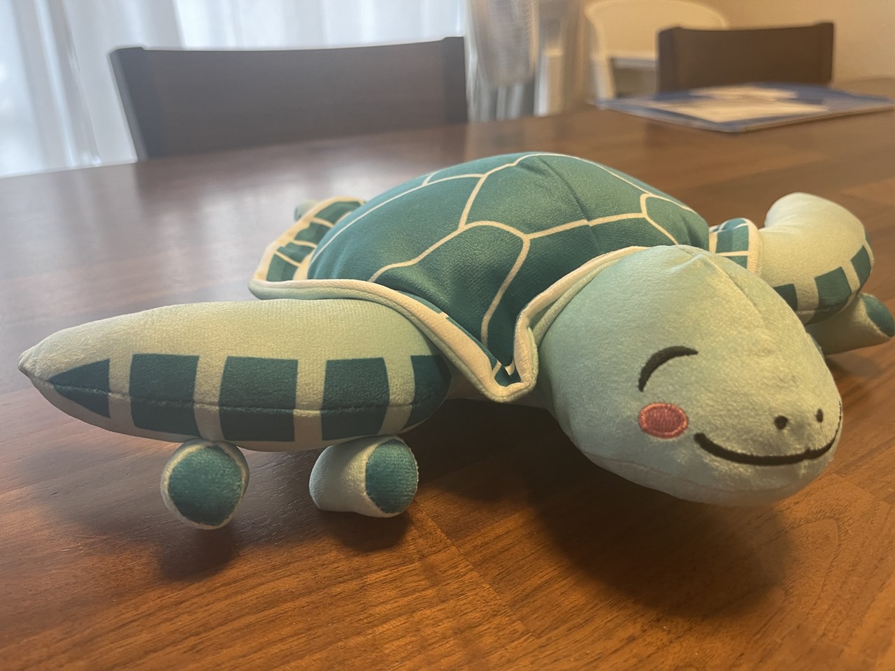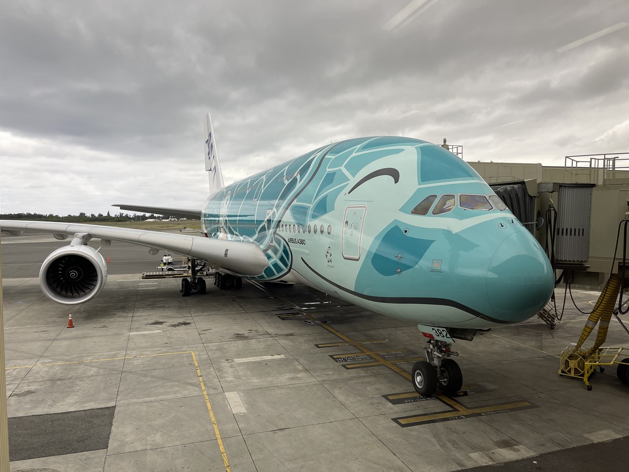 この後、ホテルに迎えに来たバスに乗って空港へ。空港でちょっとだけ最後のお土産。かえりのホヌは、この色。