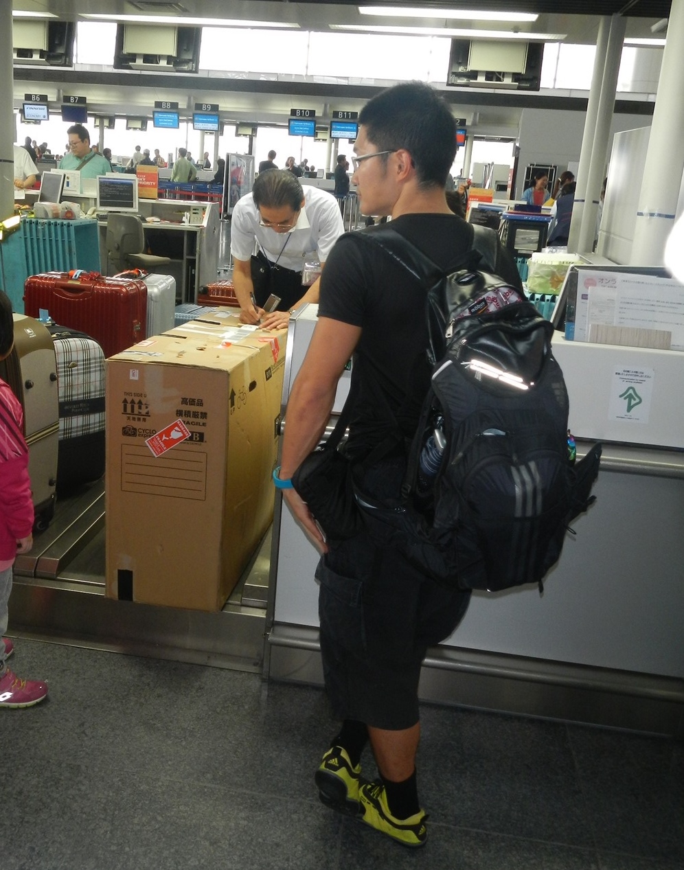 を実施。画像の通り、荷物預かりの近くに少し空きスペースがあったので、ここで大々的に店開きをしてバイクを組む。この間、wifiやらSIMやらどうしようかと考える。オレはiPhoneのSIMフリー化をしていなかったのだが、K氏がAndroidのスマートフォンを貸してくれるというのでSIMを1個買う。便利じゃ。その後海外ではいつもSIMを買うようにしたオレ。学習したー。またこのときはみんなに輪行袋を持ってきてもらっていたので、それに入れて移動。これはあとで高鐵(高速鐵道=High Speed Railway=日本人的には台湾新幹線)に乗るとき使う。