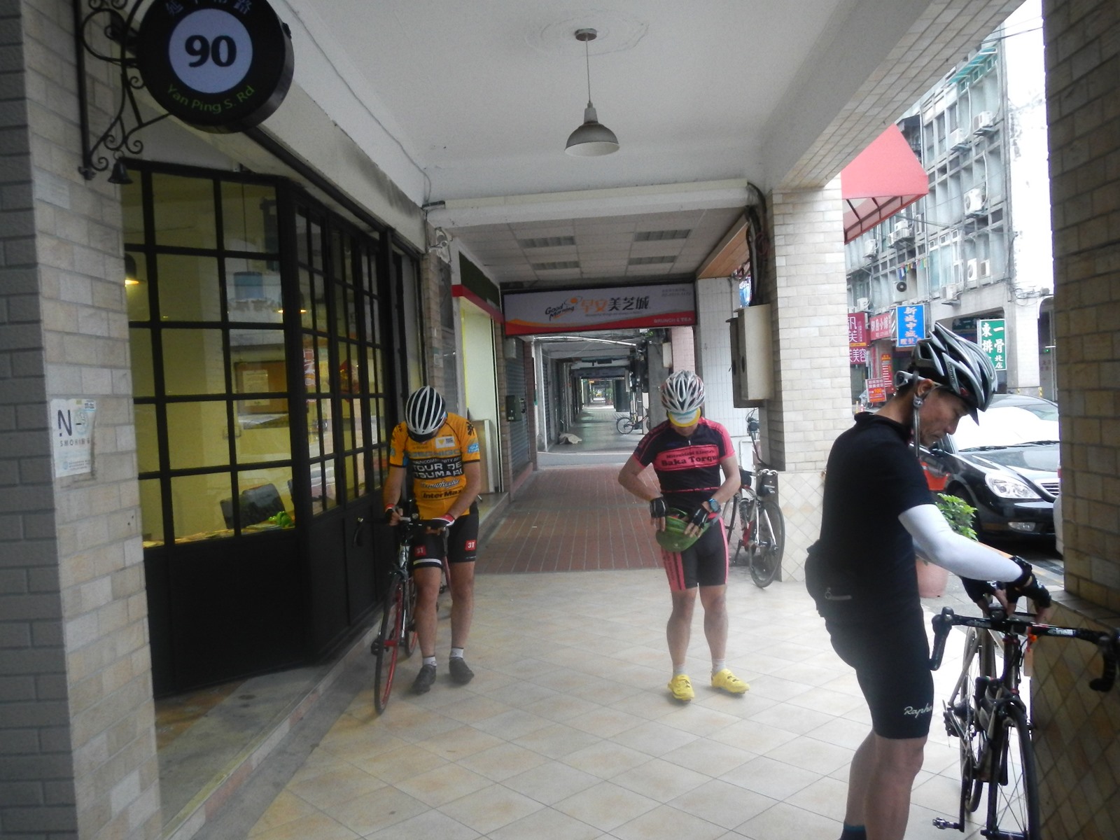 ついに台湾の地を走り出す。Stravaのデータも、5:58スタートとログが残っている。早朝の台湾は快適な雰囲気。まずは都会を抜ける。いつも感じる、「オレは自由だ」な感じ。この間、右側通行に慣れていく。イスタンブール出身のC君は、久しぶりすぎて完全に日本の感覚になっている。途中、かなり早い時点で誰かが「トイレ!」ということになったので、ルート変更して「公園近くならトイレあるよね」ということで、う回した記憶があるぞ。ここでStravaのデータをアップにすると、大安森林公園に寄ってるもんね。