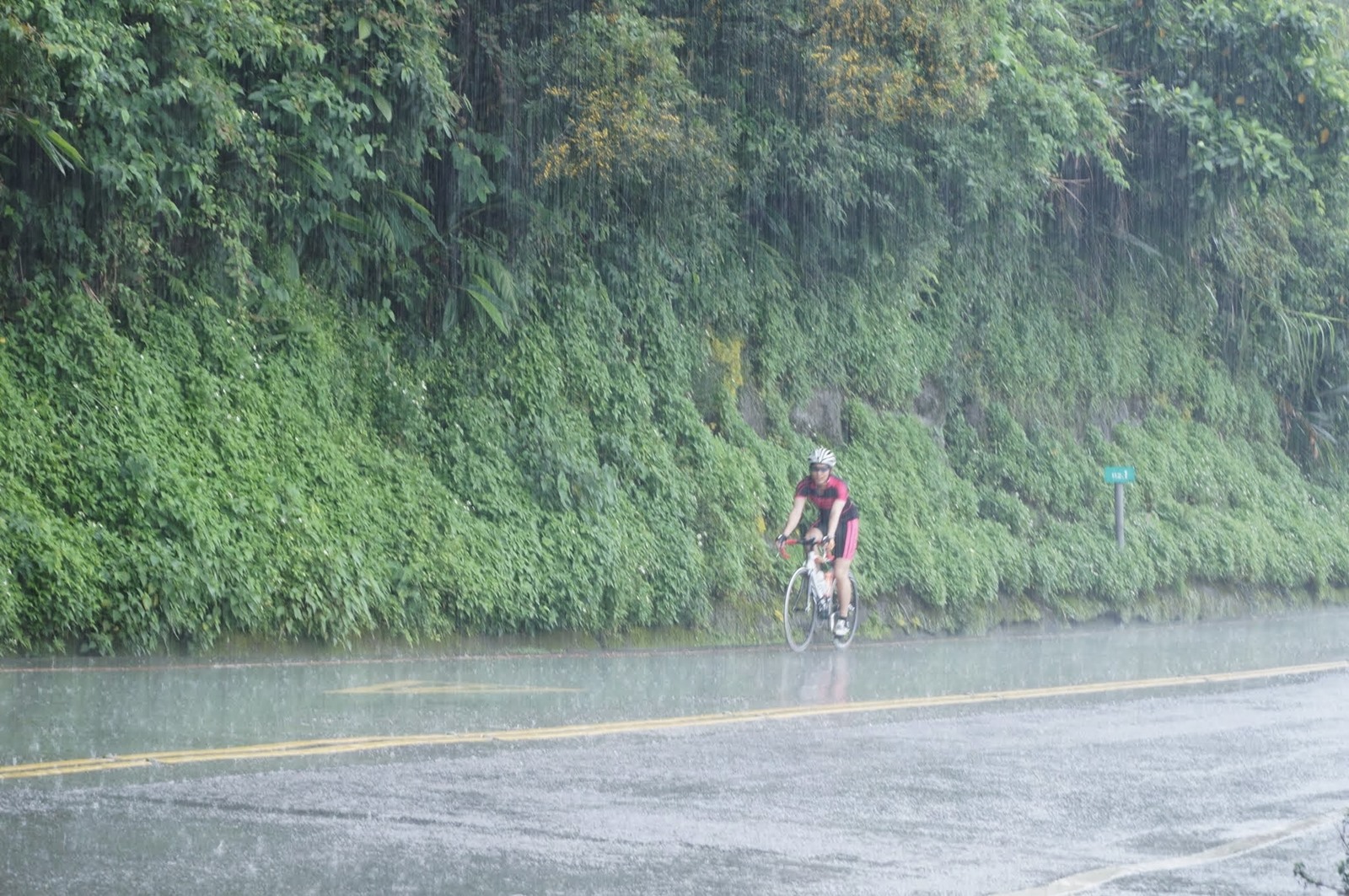 これらがすべて、というわけではないが、美しい景色、想定していたより走りやすい道、地図をみたらわかる通り断崖絶壁が作りだす雰囲気。いやあ、これは走るべきと言いたい。最後の画像はざっと雨が降ったんだが、これも土砂降りが5分くらい、その後はさっと上がってしまった。これも南国の雰囲気だね。