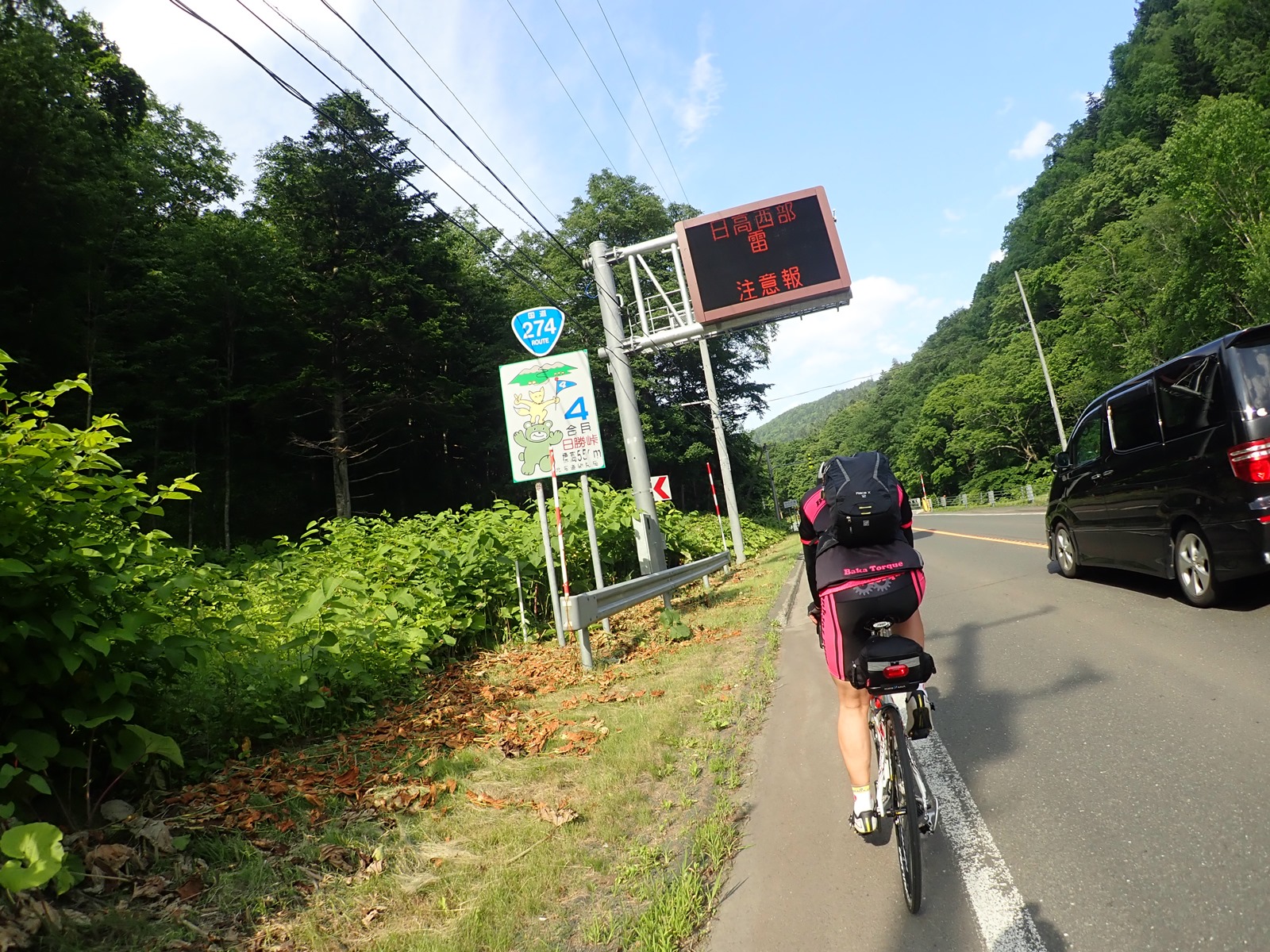 ・とにかく路面がよくない。ハンドサインは減速、右左折以外はパンクしそうか転倒しそうなものだけでOK。・北海道は凍って溶けて/その広大さ故の費用のため道が悪い。路肩注意。
